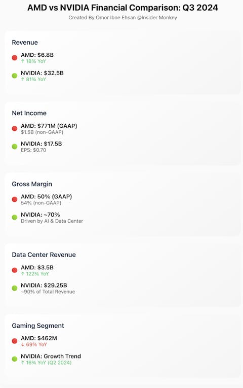 Nvidia is focusing more on high-margin AI chips, whereas AMD is trying to undercut it and offer more value. I personally see it as something copied from AMD’s playbook in the CPU market—where AMD slowly and methodically caught up to Intel—but it never managed to dominate it.
