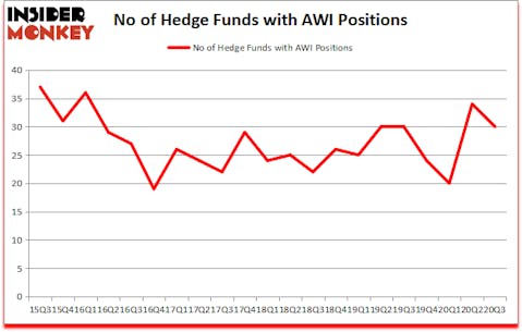 At Q3’s end, a total of 30 of the hedge funds tracked by Insider Monkey were bullish on this stock, a change of -12% from the previous quarter. Below, you can check out the change in hedge fund sentiment towards AWI over the last 21 quarters. So, let’s examine which hedge funds were among the top holders of the stock and which hedge funds were making big moves.
