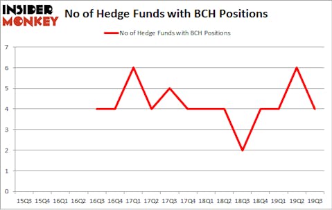 At Q3’s end, a total of 4 of the hedge funds tracked by Insider Monkey were long this stock, a change of -33% from the second quarter of 2019. On the other hand, there were a total of 2 hedge funds with a bullish position in BCH a year ago. So, let’s see which hedge funds were among the top holders of the stock and which hedge funds were making big moves.