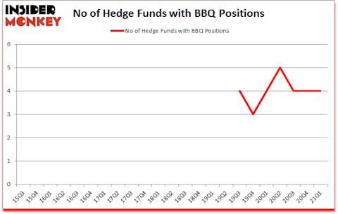 At Q1’s end, a total of 4 of the hedge funds tracked by Insider Monkey were bullish on this stock, a change of 0% from one quarter earlier. By comparison, 4 hedge funds held shares or bullish call options in BBQ a year ago. With hedge funds’ sentiment swirling, there exists a select group of key hedge fund managers who were upping their stakes significantly (or already accumulated large positions).