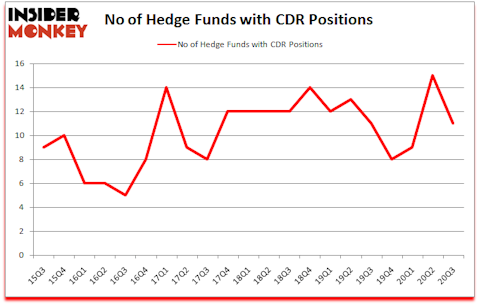 At the end of September, a total of 11 of the hedge funds tracked by Insider Monkey were bullish on this stock, a change of -27% from one quarter earlier. The graph below displays the number of hedge funds with bullish position in CDR over the last 21 quarters. So, let’s review which hedge funds were among the top holders of the stock and which hedge funds were making big moves.