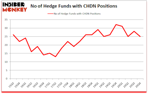 Heading into the first quarter of 2021, a total of 25 of the hedge funds tracked by Insider Monkey were long this stock, a change of -11% from one quarter earlier. The graph below displays the number of hedge funds with bullish position in CHDN over the last 22 quarters. So, let’s examine which hedge funds were among the top holders of the stock and which hedge funds were making big moves.