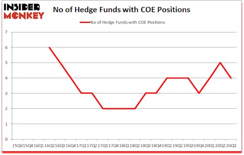 At Q3’s end, a total of 4 of the hedge funds tracked by Insider Monkey held long positions in this stock, a change of -20% from the previous quarter. On the other hand, there were a total of 4 hedge funds with a bullish position in COE a year ago. With the smart money’s capital changing hands, there exists an “upper tier” of noteworthy hedge fund managers who were increasing their holdings significantly (or already accumulated large positions).