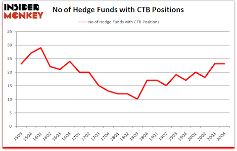 Heading into the first quarter of 2021, a total of 23 of the hedge funds tracked by Insider Monkey held long positions in this stock, a change of 0% from one quarter earlier. Below, you can check out the change in hedge fund sentiment towards CTB over the last 22 quarters. With hedge funds’ sentiment swirling, there exists a few notable hedge fund managers who were adding to their stakes significantly (or already accumulated large positions).