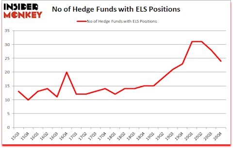 At Q4’s end, a total of 24 of the hedge funds tracked by Insider Monkey held long positions in this stock, a change of -14% from the third quarter of 2020. The graph below displays the number of hedge funds with bullish position in ELS over the last 22 quarters. With hedge funds’ positions undergoing their usual ebb and flow, there exists a few notable hedge fund managers who were adding to their holdings meaningfully (or already accumulated large positions).