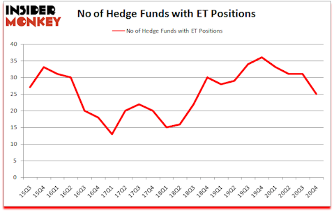 Heading into the first quarter of 2021, a total of 25 of the hedge funds tracked by Insider Monkey were bullish on this stock, a change of -19% from the previous quarter. The graph below displays the number of hedge funds with bullish position in ET over the last 22 quarters. So, let’s review which hedge funds were among the top holders of the stock and which hedge funds were making big moves.