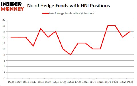HNI Corp (NYSE:HNI) was in 16 hedge funds’ portfolios at the end of the third quarter of 2019. HNI investors should pay attention to an increase in support from the world’s most elite money managers recently. There were 14 hedge funds in our database with HNI holdings at the end of the previous quarter. Our calculations also showed that HNI isn’t among the 30 most popular stocks among hedge funds (click for Q3 rankings and see the video below for Q2 rankings).