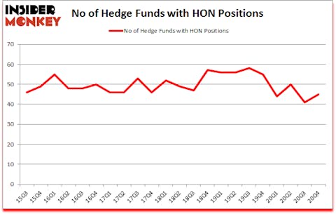 Is HON stock a buy or sell? Honeywell International Inc. (NYSE:HON) shareholders have witnessed an increase in enthusiasm from smart money lately. Honeywell International Inc. (NYSE:HON) was in 45 hedge funds’ portfolios at the end of December. The all time high for this statistic is 58. There were 41 hedge funds in our database with HON holdings at the end of September. Our calculations also showed that HON isn’t among the 30 most popular stocks among hedge funds (click for Q4 rankings).
