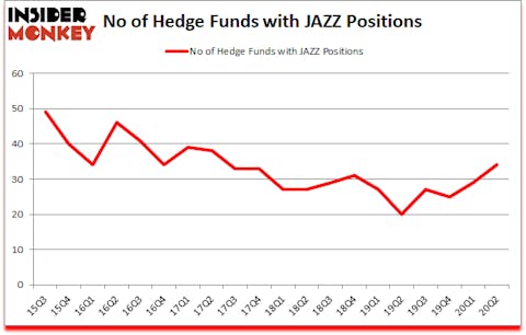 Jazz Pharmaceuticals Plc (NASDAQ:JAZZ) shareholders have witnessed an increase in hedge fund sentiment of late. Jazz Pharmaceuticals Plc (NASDAQ:JAZZ) was in 34 hedge funds’ portfolios at the end of June. The all time high for this statistics is 49. There were 29 hedge funds in our database with JAZZ positions at the end of the first quarter. Our calculations also showed that JAZZ isn’t among the 30 most popular stocks among hedge funds (click for Q2 rankings and see the video for a quick look at the top 5 stocks).