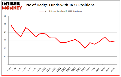 Is JAZZ stock a buy? Jazz Pharmaceuticals Plc (NASDAQ:JAZZ) investors should be aware of an increase in hedge fund sentiment lately. Jazz Pharmaceuticals Plc (NASDAQ:JAZZ) was in 29 hedge funds’ portfolios at the end of December. The all time high for this statistic is 49. There were 28 hedge funds in our database with JAZZ positions at the end of the third quarter. Our calculations also showed that JAZZ isn’t among the 30 most popular stocks among hedge funds (click for Q4 rankings).