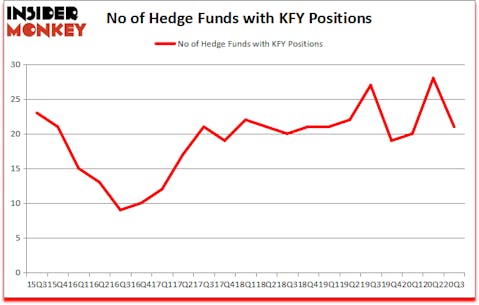 At Q3’s end, a total of 21 of the hedge funds tracked by Insider Monkey were bullish on this stock, a change of -25% from the previous quarter. The graph below displays the number of hedge funds with bullish position in KFY over the last 21 quarters. With hedgies’ positions undergoing their usual ebb and flow, there exists a select group of key hedge fund managers who were upping their holdings substantially (or already accumulated large positions).