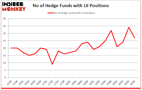 Is LII stock a buy? Lennox International Inc. (NYSE:LII) shareholders have witnessed a decrease in enthusiasm from smart money in recent months. Lennox International Inc. (NYSE:LII) was in 27 hedge funds’ portfolios at the end of December. The all time high for this statistic is 34. There were 34 hedge funds in our database with LII holdings at the end of September. Our calculations also showed that LII isn’t among the 30 most popular stocks among hedge funds (click for Q4 rankings).