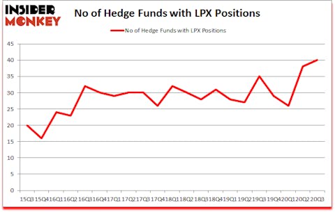 At the end of September, a total of 40 of the hedge funds tracked by Insider Monkey were bullish on this stock, a change of 5% from one quarter earlier. The graph below displays the number of hedge funds with bullish position in LPX over the last 21 quarters. With the smart money’s capital changing hands, there exists an “upper tier” of key hedge fund managers who were increasing their holdings substantially (or already accumulated large positions).