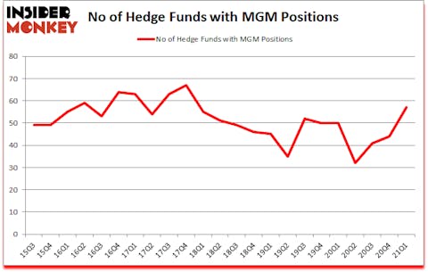 Is MGM Resorts International (NYSE:MGM) a marvelous investment right now? Investors who are in the know were becoming more confident. The number of long hedge fund bets moved up by 13 lately. MGM Resorts International (NYSE:MGM) was in 57 hedge funds’ portfolios at the end of March. The all time high for this statistic is 67. Our calculations also showed that MGM isn’t among the 30 most popular stocks among hedge funds (click for Q1 rankings). There were 44 hedge funds in our database with MGM positions at the end of the fourth quarter.