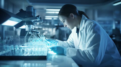 A biopharmaceutical researcher proficiently using laboratory instruments.
