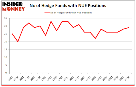 Is NUE stock a buy? Nucor Corporation (NYSE:NUE) was in 29 hedge funds’ portfolios at the end of December. The all time high for this statistic is 33. NUE shareholders have witnessed an increase in hedge fund sentiment of late. There were 28 hedge funds in our database with NUE positions at the end of the third quarter. Our calculations also showed that NUE isn’t among the 30 most popular stocks among hedge funds (click for Q4 rankings).