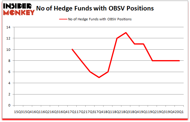At Q1’s end, a total of 8 of the hedge funds tracked by Insider Monkey were long this stock, a change of 0% from the previous quarter. Below, you can check out the change in hedge fund sentiment towards OBSV over the last 18 quarters. With hedge funds’ positions undergoing their usual ebb and flow, there exists an “upper tier” of key hedge fund managers who were upping their stakes substantially (or already accumulated large positions).