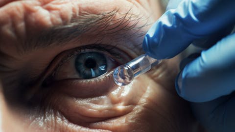 A healthcare worker administering a topical treatment for ophthalmic diseases.