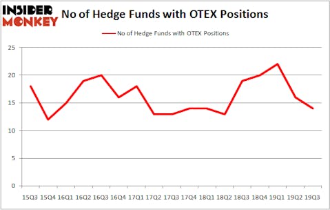 At the end of the third quarter, a total of 14 of the hedge funds tracked by Insider Monkey held long positions in this stock, a change of -13% from the second quarter of 2019. By comparison, 19 hedge funds held shares or bullish call options in OTEX a year ago. With the smart money’s sentiment swirling, there exists an “upper tier” of notable hedge fund managers who were boosting their stakes substantially (or already accumulated large positions).