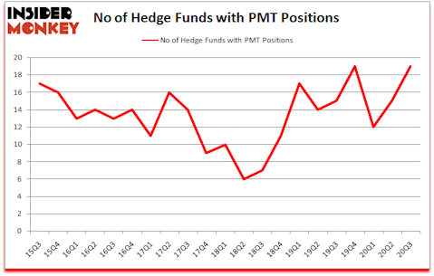 Is PMT a good stock to buy now? PennyMac Mortgage Investment Trust (NYSE:PMT) was in 19 hedge funds’ portfolios at the end of the third quarter of 2020. The all time high for this statistic is 19. This means the bullish number of hedge fund positions in this stock currently sits at its all time high. PMT has seen an increase in hedge fund sentiment recently. There were 15 hedge funds in our database with PMT holdings at the end of June. Our calculations also showed that PMT isn’t among the 30 most popular stocks among hedge funds (click for Q3 rankings and see the video for a quick look at the top 5 stocks).