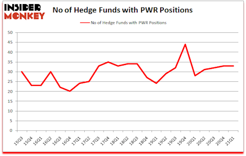 At Q1’s end, a total of 33 of the hedge funds tracked by Insider Monkey were bullish on this stock, a change of 0% from one quarter earlier. The graph below displays the number of hedge funds with bullish position in PWR over the last 23 quarters. So, let’s examine which hedge funds were among the top holders of the stock and which hedge funds were making big moves.