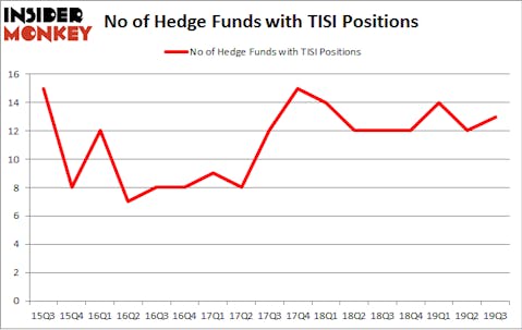 Team, Inc. (NYSE:TISI) investors should pay attention to an increase in hedge fund interest in recent months. TISI was in 13 hedge funds’ portfolios at the end of the third quarter of 2019. There were 12 hedge funds in our database with TISI positions at the end of the previous quarter. Our calculations also showed that TISI isn’t among the 30 most popular stocks among hedge funds (click for Q3 rankings and see the video below for Q2 rankings).