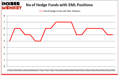 At third quarter’s end, a total of 5 of the hedge funds tracked by Insider Monkey were long this stock, a change of 0% from the second quarter of 2020. The graph below displays the number of hedge funds with bullish position in EML over the last 21 quarters. With hedgies’ sentiment swirling, there exists a few noteworthy hedge fund managers who were increasing their holdings substantially (or already accumulated large positions).