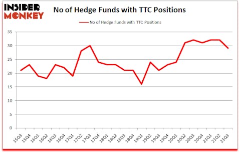 At third quarter’s end, a total of 29 of the hedge funds tracked by Insider Monkey held long positions in this stock, a change of -9% from one quarter earlier. On the other hand, there were a total of 32 hedge funds with a bullish position in TTC a year ago. With hedgies’ sentiment swirling, there exists a few key hedge fund managers who were adding to their stakes substantially (or already accumulated large positions).