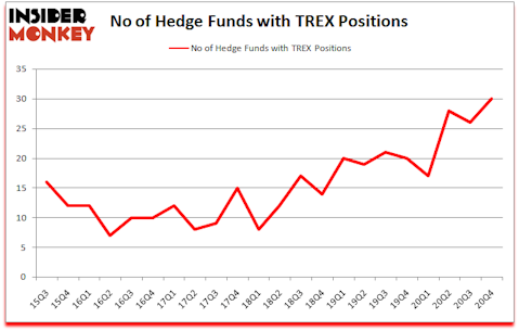 Is TREX stock a buy? Trex Company, Inc. (NYSE:TREX) was in 30 hedge funds’ portfolios at the end of the fourth quarter of 2020. The all time high for this statistic is 28. This means the bullish number of hedge fund positions in this stock currently sits at its all time high. TREX has seen an increase in hedge fund interest of late. There were 26 hedge funds in our database with TREX positions at the end of the third quarter. Our calculations also showed that TREX isn’t among the 30 most popular stocks among hedge funds (click for Q4 rankings).