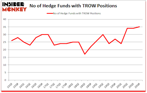 Is TROW stock a buy or sell? T. Rowe Price Group, Inc. (NASDAQ:TROW) was in 35 hedge funds’ portfolios at the end of the fourth quarter of 2020. The all time high for this statistic is 34. This means the bullish number of hedge fund positions in this stock currently sits at its all time high. TROW investors should be aware of an increase in enthusiasm from smart money in recent months. There were 34 hedge funds in our database with TROW holdings at the end of September. Our calculations also showed that TROW isn’t among the 30 most popular stocks among hedge funds (click for Q4 rankings).