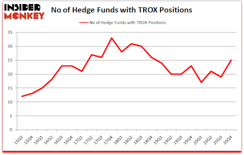 Is TROX a buy? The best stock pickers were in a bullish mood. The number of bullish hedge fund bets increased by 6 lately. Tronox Holdings Plc (NYSE:TROX) was in 25 hedge funds’ portfolios at the end of December. The all time high for this statistic is 33. Our calculations also showed that TROX isn’t among the 30 most popular stocks among hedge funds (click for Q4 rankings).