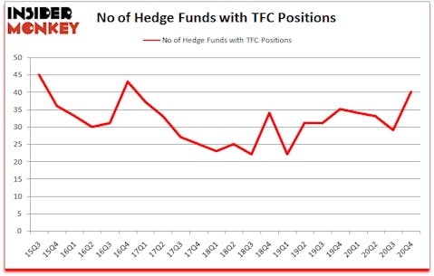 Is TFC stock a buy or sell? The smart money was getting more optimistic. The number of long hedge fund positions went up by 11 recently. Truist Financial Corporation (NYSE:TFC) was in 40 hedge funds’ portfolios at the end of December. The all time high for this statistic is 45. Our calculations also showed that TFC isn’t among the 30 most popular stocks among hedge funds (click for Q4 rankings).