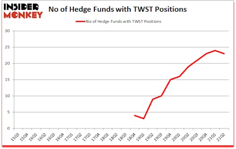 Is TWST a good stock to buy? Twist Bioscience Corporation (NASDAQ:TWST) has seen a decrease in hedge fund sentiment recently. Twist Bioscience Corporation (NASDAQ:TWST) was in 23 hedge funds’ portfolios at the end of June. The all time high for this statistic is 24. Our calculations also showed that TWST isn’t among the 30 most popular stocks among hedge funds (click for Q2 rankings).