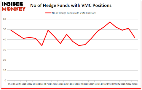 Is VMC a good stock to buy now? Vulcan Materials Company (NYSE:VMC) was in 42 hedge funds’ portfolios at the end of the third quarter of 2020. The all time high for this statistic is 57. VMC has experienced a decrease in enthusiasm from smart money in recent months. There were 51 hedge funds in our database with VMC positions at the end of the second quarter. Our calculations also showed that VMC isn’t among the 30 most popular stocks among hedge funds (click for Q3 rankings and see the video for a quick look at the top 5 stocks).