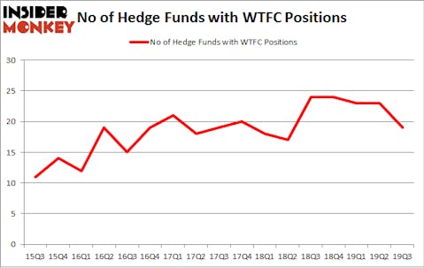 At the end of the third quarter, a total of 19 of the hedge funds tracked by Insider Monkey were bullish on this stock, a change of -17% from the second quarter of 2019. By comparison, 24 hedge funds held shares or bullish call options in WTFC a year ago. With hedge funds’ positions undergoing their usual ebb and flow, there exists an “upper tier” of notable hedge fund managers who were increasing their holdings substantially (or already accumulated large positions).