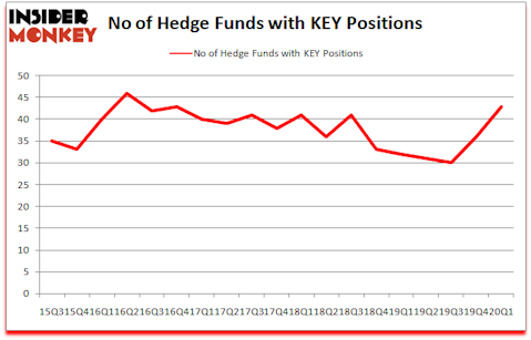 At Q1’s end, a total of 43 of the hedge funds tracked by Insider Monkey were long this stock, a change of 19% from one quarter earlier. The graph below displays the number of hedge funds with bullish position in KEY over the last 18 quarters. With hedgies’ capital changing hands, there exists a select group of noteworthy hedge fund managers who were increasing their holdings meaningfully (or already accumulated large positions).