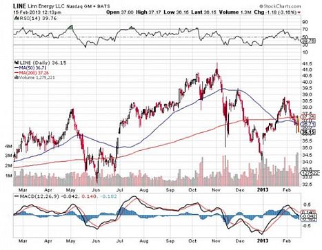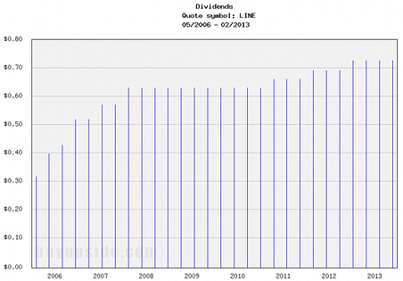 2). Massive Dividend: At the moment, Linn Energy pays out quarterly dividends of $0.73, which when annualized puts the dividend as yielding 7.79%