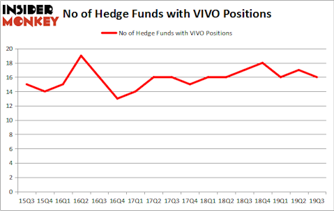 At the end of the third quarter, a total of 16 of the hedge funds tracked by Insider Monkey were bullish on this stock, a change of -6% from the second quarter of 2019. The graph below displays the number of hedge funds with bullish position in VIVO over the last 17 quarters. So, let’s find out which hedge funds were among the top holders of the stock and which hedge funds were making big moves.
