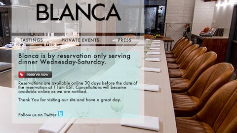 With one Michelin star, Blanca is definitely one of the top restaurants of New York City. It has a very strict reservation policy, so if you are planning to try their $195 tasting menu just remember that they accept reservations only on the first of the month and on the phone, exclusively. You should expect a modern American cuisine with an Italian influence.