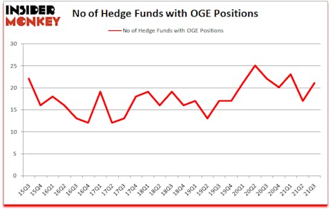 OGE Energy Corp. (NYSE:OGE) has experienced an increase in support from the world’s most elite money managers lately. OGE Energy Corp. (NYSE:OGE) was in 21 hedge funds’ portfolios at the end of the third quarter of 2021. The all time high for this statistic is 25. Our calculations also showed that OGE isn’t among the 30 most popular stocks among hedge funds (click for Q2 rankings).