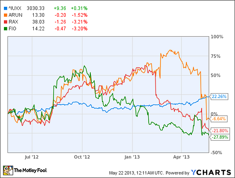 Weak margins translate to a lower share price when it is revealed. Rackspace Hosting, Inc. (NYSE:RAX), which was founded in 1988, has nine data centers. Data centers are used to sell public and private cloud solutions for companies. This means that Rackspace Hosting, Inc. (NYSE:RAX) offers hosting for companies needing Red Hat, MySQL, or Microsoft Corporation (NASDAQ:MSFT)-based solutions. When Rackspace reported first-quarter earnings, EBITDA margins were weak. This means that competition is rising, and unless the company has new or unique products or services to offer, it could spell trouble. Rackspace faced a decline in net upgrades from customers. Existing enterprises customers also provided less new business for the company. Rackspace Hosting, Inc. (NYSE:RAX) cut prices to compete with Microsoft Corporation (NASDAQ:MSFT) and Google Inc (NASDAQ:GOOG). Very recently at Google’s I/O conference, the company signaled that it was boosting its cloud offerings, broadening its services, and lowering its relative prices.