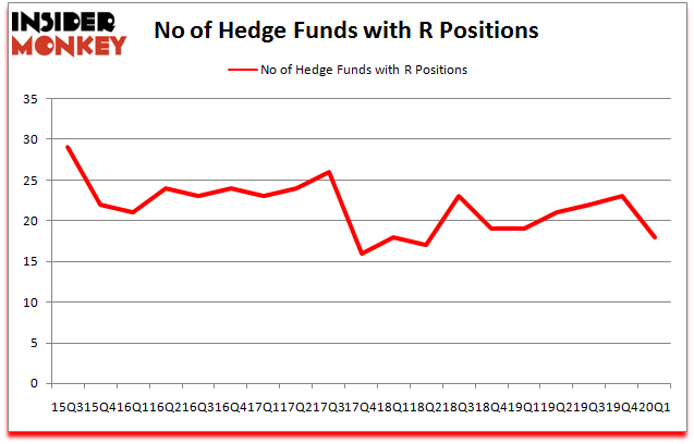 At Q1’s end, a total of 18 of the hedge funds tracked by Insider Monkey were long this stock, a change of -22% from one quarter earlier. Below, you can check out the change in hedge fund sentiment towards R over the last 18 quarters. So, let’s find out which hedge funds were among the top holders of the stock and which hedge funds were making big moves.