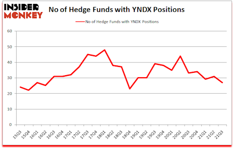 Yandex NV (NASDAQ:YNDX) investors should pay attention to a decrease in activity from the world’s largest hedge funds recently. Yandex NV (NASDAQ:YNDX) was in 27 hedge funds’ portfolios at the end of September. The all time high for this statistic is 48. There were 31 hedge funds in our database with YNDX holdings at the end of June. Our calculations also showed that YNDX isn’t among the 30 most popular stocks among hedge funds (click for Q3 rankings).