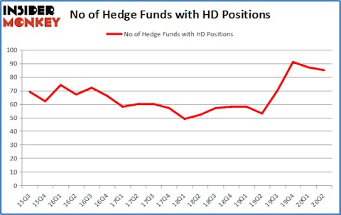 The Home Depot, Inc. (NYSE:HD) has experienced a decrease in hedge fund interest of late. The Home Depot, Inc. (NYSE:HD) was in 85 hedge funds’ portfolios at the end of the second quarter of 2020. The all time high for this statistics is 91. There were 87 hedge funds in our database with HD holdings at the end of March. Our calculations also showed that HD isn’t among the 30 most popular stocks among hedge funds (click for Q2 rankings and see the video for a quick look at the top 5 stocks).