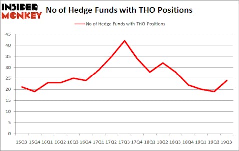 Thor Industries, Inc. (NYSE:THO) investors should pay attention to an increase in enthusiasm from smart money lately. THO was in 24 hedge funds’ portfolios at the end of September. There were 19 hedge funds in our database with THO positions at the end of the previous quarter. Our calculations also showed that THO isn’t among the 30 most popular stocks among hedge funds (click for Q3 rankings and see the video at the end of this article for Q2 rankings).