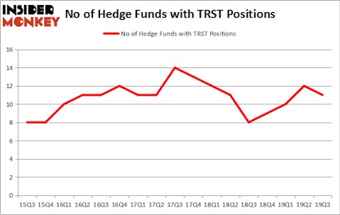 At the end of the third quarter, a total of 11 of the hedge funds tracked by Insider Monkey were bullish on this stock, a change of -8% from the previous quarter. On the other hand, there were a total of 8 hedge funds with a bullish position in TRST a year ago. With hedge funds’ capital changing hands, there exists a select group of notable hedge fund managers who were increasing their stakes considerably (or already accumulated large positions).