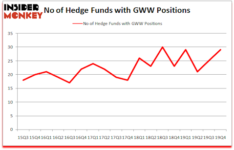 W.W. Grainger, Inc. (NYSE:GWW) investors should be aware of an increase in hedge fund sentiment of late. GWW was in 29 hedge funds’ portfolios at the end of December. There were 25 hedge funds in our database with GWW positions at the end of the previous quarter. Our calculations also showed that GWW isn’t among the 30 most popular stocks among hedge funds (click for Q4 rankings and see the video below for Q3 rankings).