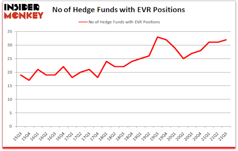 At the end of the third quarter, a total of 32 of the hedge funds tracked by Insider Monkey held long positions in this stock, a change of 3% from the second quarter of 2021. Below, you can check out the change in hedge fund sentiment towards EVR over the last 25 quarters. With the smart money’s sentiment swirling, there exists an “upper tier” of key hedge fund managers who were adding to their holdings meaningfully (or already accumulated large positions).