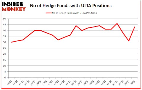 Ulta Beauty, Inc. (NASDAQ:ULTA) has seen an increase in hedge fund interest lately. Ulta Beauty, Inc. (NASDAQ:ULTA) was in 43 hedge funds’ portfolios at the end of the fourth quarter of 2020. The all time high for this statistic is 46. There were 31 hedge funds in our database with ULTA positions at the end of the third quarter. Our calculations also showed that ULTA isn’t among the 30 most popular stocks among hedge funds (click for Q4 rankings).