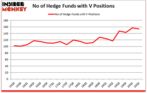 Visa Inc (NYSE:V) has experienced a decrease in activity from the world’s largest hedge funds recently. Visa Inc (NYSE:V) was in 154 hedge funds’ portfolios at the end of June. The all time high for this statistics is 157 (2020 Q1). Our calculations also showed that V ranks #6 among the 30 most popular stocks among hedge funds (click for Q2 rankings and see the video for a quick look at the top 5 stocks).